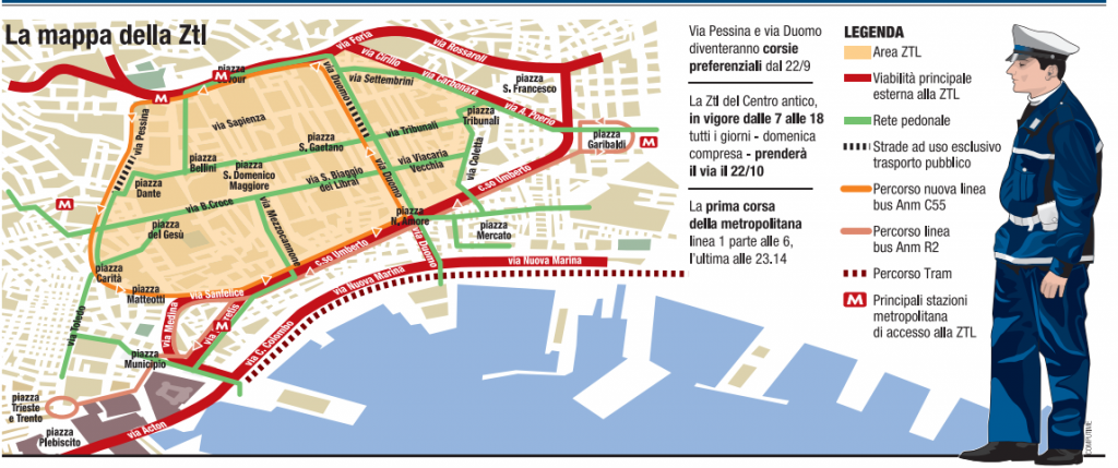 La nuova grande ZTL di Napoli, che racchiude il centro storico della capitale del Regno delle Due Sicilie, inizierà il 22 settembre 2011, il sindaco De Magistris, inizia la sua rivoluzione della città, con l’appoggio pieno della cittadinanza, che vedono in decisioni coraggiose come questa la volontà di migliorare Napoli.